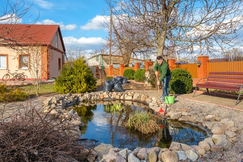 Wenn das Wasser im Teich friert, dehnt es sich aus und kann dabei einen starken Druck entwickeln. „Davon können nicht frostsichere Geräte kaputtgehen“, erklärt Teichexperte Uwe Kohler von Söchting Biotechnik. Er rät daher, Teichpumpe, Wasserspeier und Fontänen vor dem Zufrieren auszuschalten, leerlaufen zu lassen, zu reinigen und anschließend in einem Behälter mit Wasser und Pflegemitteln frostfrei aufzubewahren. So bleiben die Dichtungen intakt.
