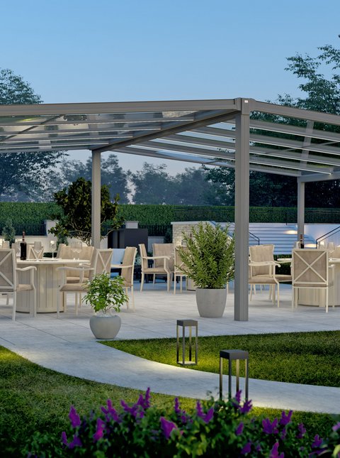 Schatten nach Mass mit freistehenden Markisen