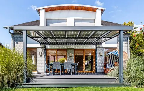 Mit einem Solardach auf der Terrasse eigenen Strom gewinnen