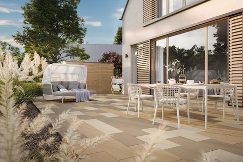Ein weiterer Vorteil sind die vergleichsweise kurzen Wege: Betonprodukte werden zumeist in einem Umkreis von rund 100 Kilometern produziert und transportiert. Dadurch entstehen deutlich geringere Transportemissionen als etwa bei Naturstein, der häufig aus China importiert wird, oder Holz aus Skandinavien. Bei Verbundmaterialien wiederum ist zu beachten, dass eine sortenreine Trennung am Ende der Lebensdauer nur schwer möglich ist. Unter www.betonstein.org gibt es mehr Informationen zur Ökobilanzstudie des Betonverbandes SLG. Hier finden sich sowohl eine Kurzversion als auch die Komplettfassung „Vergleichende Ökobilanz – Bericht / Terrassenaufbauten mit unterschiedlichen Deckschichten“ (Fassung Juli 2025) zum Download. Neben der Umweltverträglichkeit weisen Terrassenbeläge aus Betonwerkstein weitere positive Eigenschaften auf. Dazu zählen etwa die vielfältigen Gestaltungsmöglichkeiten, die Pflegeleichtigkeit und die lange Haltbarkeit des Belages.