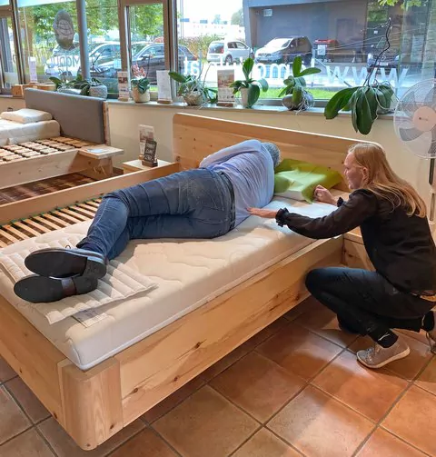 Bei LaModula beispielsweise gibt es drei Arten von Lattenrosten: Lattenrost, Lamellenrost und Tellerlattenrost. Sie unterscheiden sich im Hinblick auf die jeweilige Körperanpassung. Alle Modelle sind metallfrei gefertigt und gewährleisten eine Federung über die gesamte Liegefläche. Und auch hier gilt: Je höher, desto stützender ist der Lattenrost in seiner Basisfunktion.