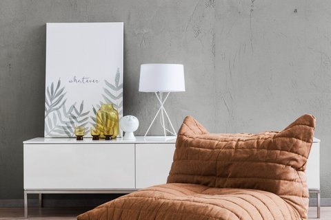Anschließend sorgt der Effektspachtel für eine besondere Betonoptik. Der Spachtel wird mit einer Zahnkelle dünn aufgezogen und noch im feuchten Zustand geglättet. Sobald die Kreativfolie in den feuchten Spachtel gedrückt wird, entstehen kleine Lufteinschlüsse, die später wie echte Materialporen wirken. Auf diese Weise erhält jede Wohnung eine industrielle und zugleich minimalistische Anmutung. Unter www.schoener-wohnen-farbe.com etwa gibt es viele weitere Tipps zur Wandgestaltung, erhältlich ist die Trendstruktur im Fachhandel und in vielen Baumärkten. Tipp: Das Material kommt besonders gut zur Geltung, wenn es mit zeitlosem Design und hochwertigen Stoffen kombiniert wird. Weiche, warme Textilien wie Wolle oder Samt heben den Kontrast hervor.