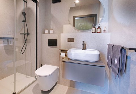 Wichtig ist auch im Mini-Haus ein vollwertiges Bad mit Dusche, das genügend Komfort bietet. Tipp: Praktische Stauraumlösungen können dabei helfen, etwa im Schlafzimmer jeden Winkel clever auszunutzen. Eine Infrarotheizung sorgt im kleinen Haus für Wärme an kalten Tagen und eine Wärmepumpe für die energiesparende Warmwasserbereitung. Für jederzeit frische Luft gibt es eine dezentrale Lüftungsanlage mit Wärmerückgewinnung. Dreifach verglaste Fenster ergänzen die gut gedämmte Außenwand und sorgen für ein energieeffizientes Wohnen. Vorbereitete Installationen für eine Photovoltaik-Anlage machen es einfach, selbst die benötigte Energie zu gewinnen. Weitere Informationen finden sich etwa unter www.danwood.de, die Besichtigung eines Mini-Hauses ist beispielsweise in der Fertighausausstellung im Bauzentrum Poing bei München möglich.
