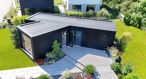 Gut geplante Grundrisse sind das A und O, damit ein kleines Haus die individuellen Anforderungen erfüllt und eine hohe Wohnqualität bei gleichzeitig geringem Platzbedarf bietet. Smarte haustechnische sowie barrierefreie Lösungen helfen dabei, das Leben bequem und sicher zu organisieren. Neben der Funktionalität und dem Komfort ist vielen aber auch das Design wichtig. Raumhohe und wandbreite Fenster für viel Tageslicht im Inneren, schmucke Fassaden und ein hochwertiges Interieur erfüllen etwa bei der Modulhausserie „Next Easy“ von Fertighaus-Hersteller Danwood die Ansprüche an eine moderne Ästhetik. Von 23 bis 63 Quadratmeter reicht das Angebot, das sowohl Singles, Paare als auch Familien anspricht. Der windgeschützte Eingang und die Schiebetür zur Terrasse zählen zu den praktischen Details, die sich im Alltag bewähren. Je nach Ausführung sind die Mini-Domizile für die zeitweilige Nutzung oder als Dauerwohnsitz geeignet.