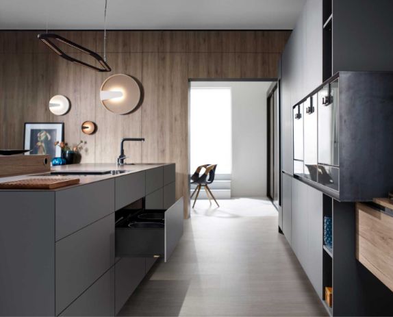 Der Platz entscheidet mit, welche Art von Küche überhaupt einziehen kann und Sinn macht. Ist etwa nur ein kleiner Raum für die Küche eingeplant, kann nur eine schlanke Lösung umgesetzt werden, wie zum Beispiel eine L-Küche. Bei wenig Platz zahlt es sich übrigens aus, Möglichkeiten zu nutzen, die mehr Stauraum bringen, wie etwa die Sockellösung SPACE STEP von Blum, die sogar eine extra Schublade und eine praktische Tritthilfe in den Möbelsockel bringt.