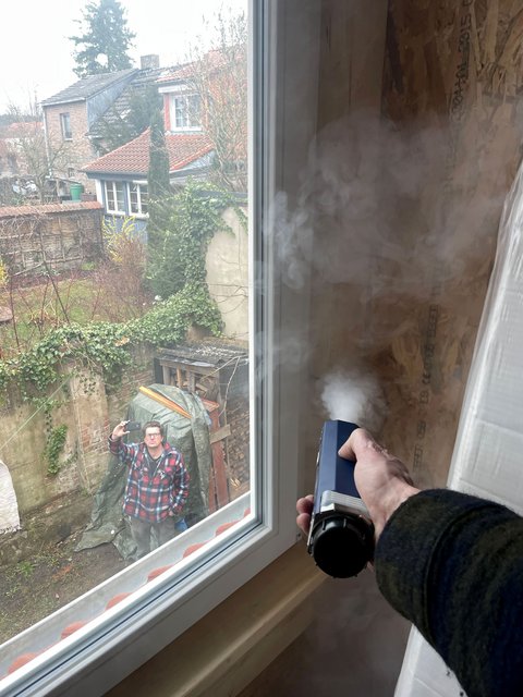 Ob die luftdichte Ebene tatsächlich dicht ist, lässt sich mit einer einfachen Messung prüfen, die noch vor dem Innenausbau erfolgen sollte. Eine solche baubegleitende Dichtheitsprüfung hilft, Leckagen frühzeitig zu entdecken. Eventuelle Nachbesserungen sind mit geringem Aufwand umzusetzen, wenn die Wände noch nicht geschlossen sind. Die Investition von 500 bis 1.000 Euro für diesen Schritt lohnt sich, setzt man sie ins Verhältnis zu den Gesamtkosten, die sich schnell auf 50.000 bis 100.000 Euro belaufen können. Denn auf lange Sicht spart der zusätzliche Aufwand Geld und Nerven und sorgt dafür, dass das Dach dauerhaft gut geschützt bleibt.